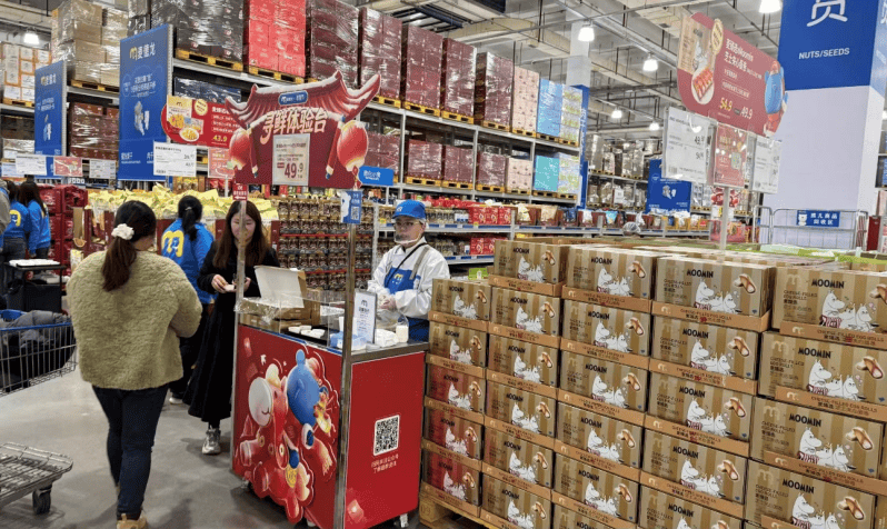 依托麦德龙笼盖全球的采购收集,以及“现制即食”的本土炊火气,麦德龙雨花店正在商品布局上实现了计谋升级。正在“宽类窄品”策略下,商品总数量精简至约6000种,此中,进口商品比例为20%,新增商品比例达30%,涵盖烘焙熟食、活水产、潮玩、小我洗护等高频消费类商品。同时,商场持续强化“麦臻选”、“宜客”等自有品牌矩阵。“麦臻选”取出名的IP姆明(Moonmin)合做推出系列,笼盖洗化,糖巧休闲食物等多个品类,以其“爱、家庭、陪同取怯气”的温暖内核取精巧设想,深度契合年轻家庭客群需求。
