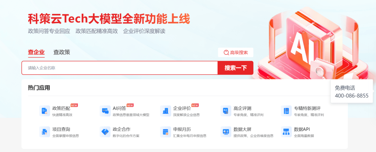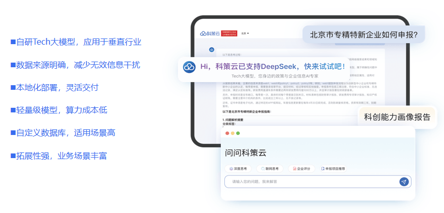 政策查询的精准度,离不开全面的企业数据支持。科策云建立了笼盖全国8000余万家科技企业的数据库,整合了18000万+工商数据、10000万+专利数据、4590万+商标数据等度消息,且连结T+0更新效率。正在政策查询过程中,平台能连系企业的规模、行业、研发能力、学问产权储蓄等焦点消息,智能推送适配政策,避免“政策取企业需求不婚配”的无效查询。支持这一系列高效办事的,是科策云的焦点手艺实力。平台基于大数据研究、该模子比拟保守AI算法,精确度提高至多130%,召回效率提拔600%,能无效处理复杂场景下的政策婚配难题。但对企业用户而言,无需关心复杂的手艺道理,只需聚焦其带来的现实体验——无论是恍惚查询“小微企业税收优惠”,仍是精准检索“生物医药范畴研发补助”,平台都能快速反馈最优成果,同时从动提取政策焦点要点,如申报前提、截止时间、申报流程等,削减人工解读成本。