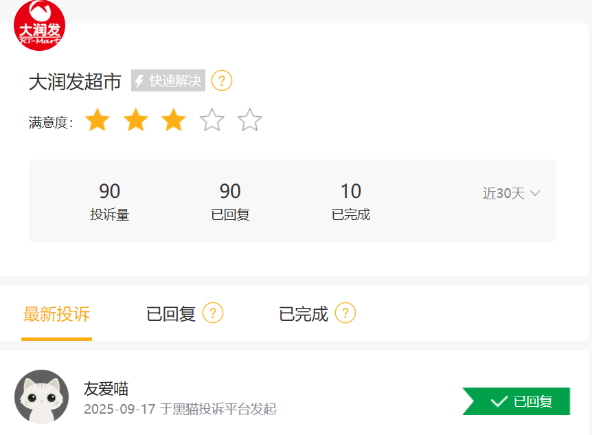 以黑猫平台为例的收集公开渠道近一个月客诉数据来看,大润发近期收到的90条消费者赞扬仍集中于食物平安、售后和虚假宣传三大范畴。此中,食物平安仍是最焦点的问题,客诉量占比超五成。