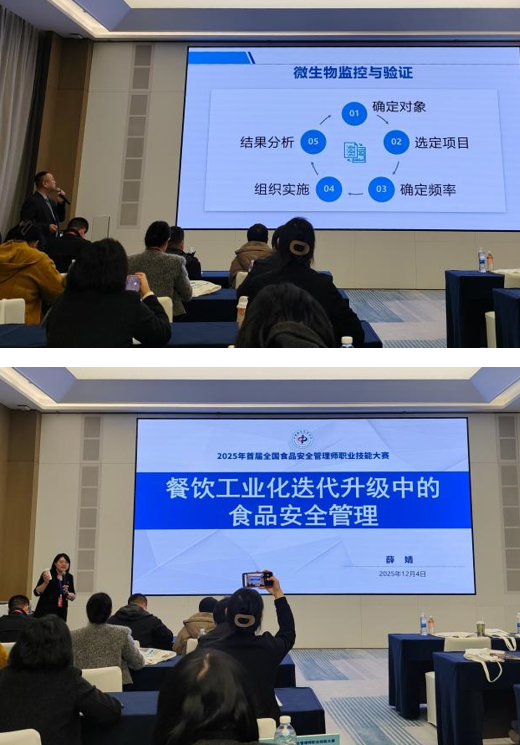 中国贸易技师协会食物平安工做委员会从任、中国农业大学食物学院养分取食物平安系传授何计国等资深专家还正在赛事期间进行了专题分享,环绕行业成长趋向、手艺立异取风险办理等内容展开深切交换,为参赛选手和取会人员供给了一场结实的“学问赋能”盛宴。