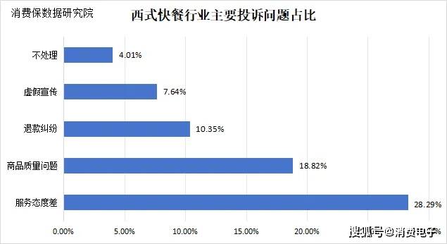 据统计,西式快餐行业的相关赞扬次要集中正在办事立场、商质量量以及退款胶葛等问题上,18。82%和10。35%。