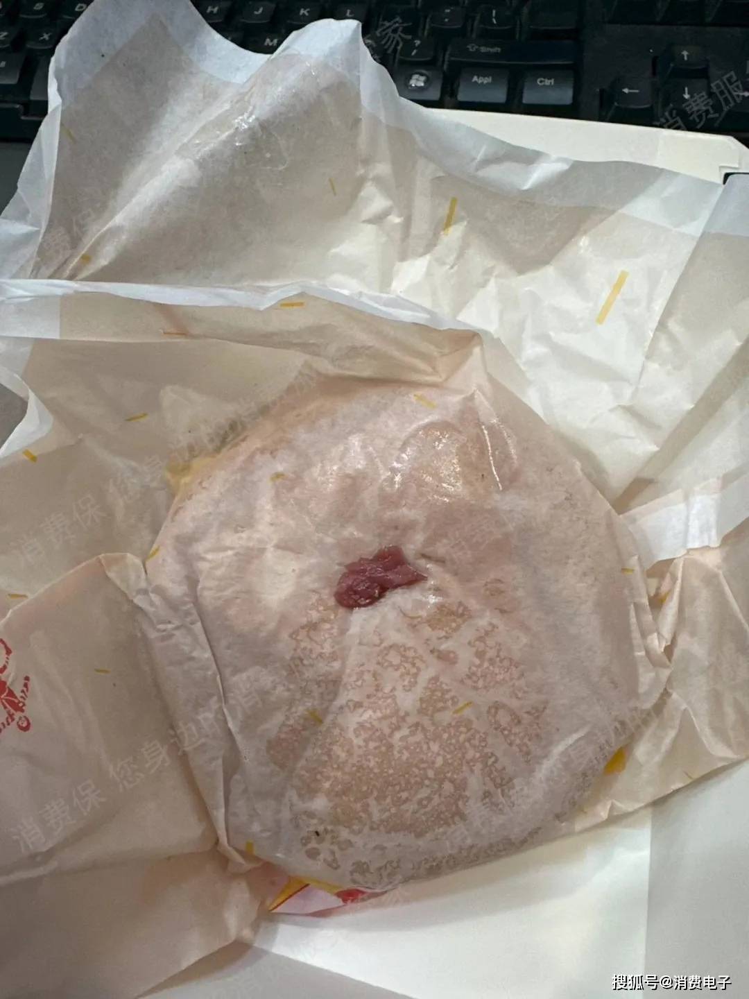 消费者李先生(假名)近期也碰到了雷同的问题。11月22日,李先生通过公共点评外卖采办了麦当劳大堡口福四件套。正在食用套餐内的培根芝士双牛堡时,李先生不测发觉汉堡包拆袋上粘有一小块生肉。