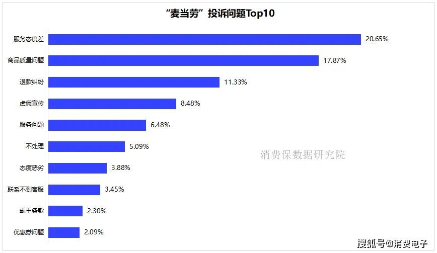 演讲显示,“麦当劳”赞扬焦点聚焦办事取商品两大范畴。此中办事立场差赞扬占比最高,达20。65%;商质量量问题紧随其后,占比17。87%,两项合计接近四成。